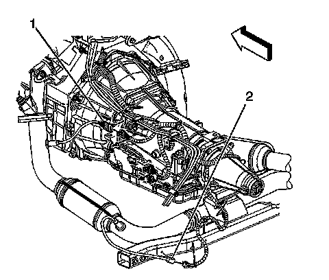 12. Disconnect the oxygen sensor electrical connectors (1, 2).