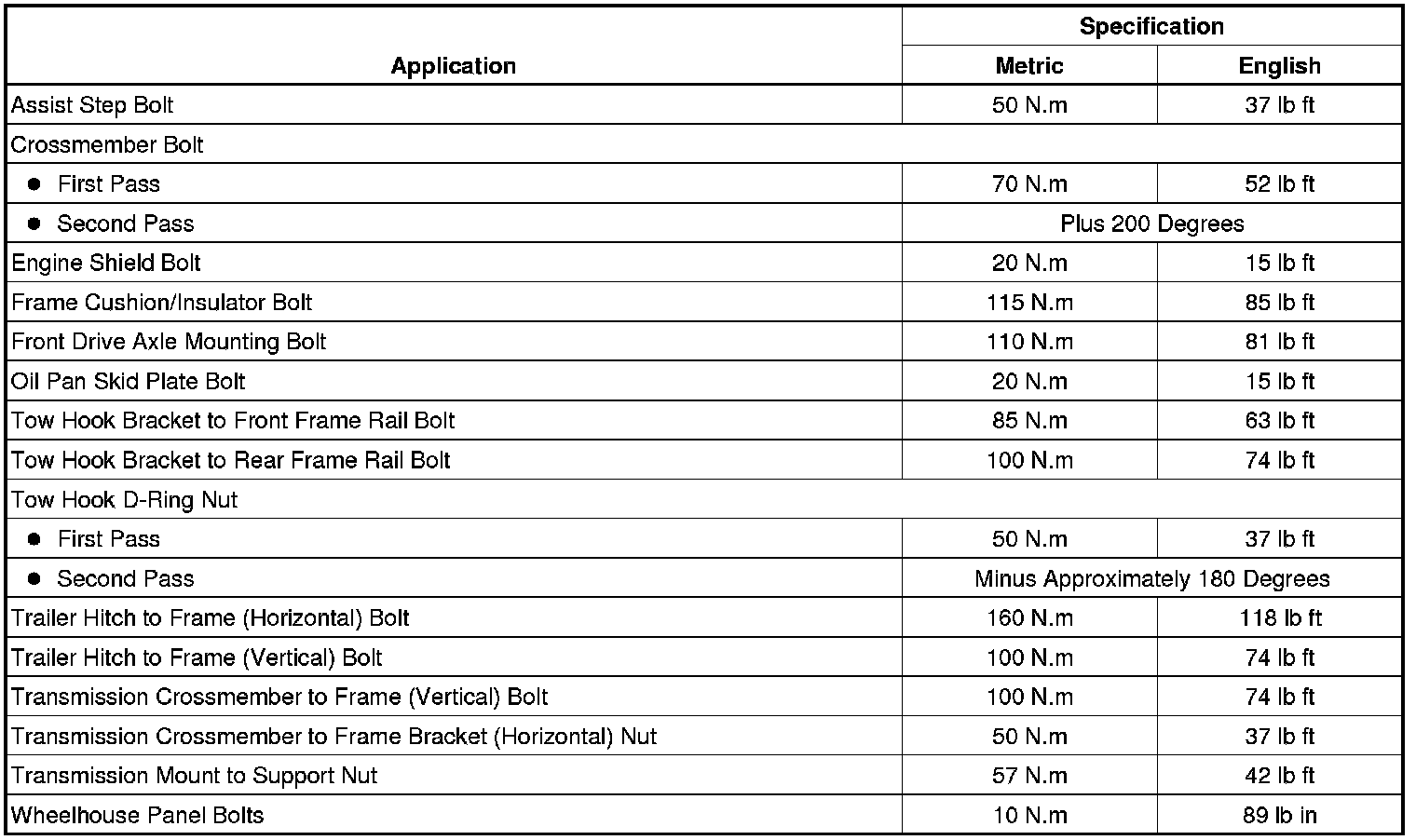 Fastener Tightening Specifications