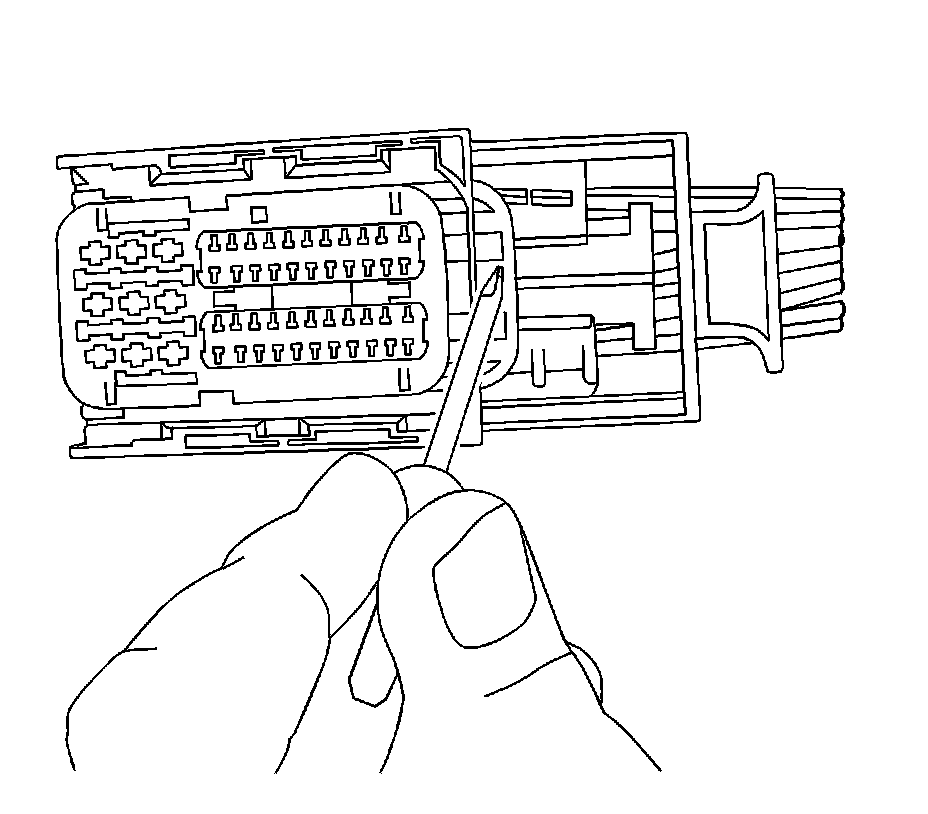 8. Use the J 38125-213 or the J 38125-560 (GM P/N 15314260) tool to release the terminals by inserting the tool into the terminal release cavity. See the release tool cross reference in the Reference Guide of the J-38125 to ensure that the correct release tool is used.