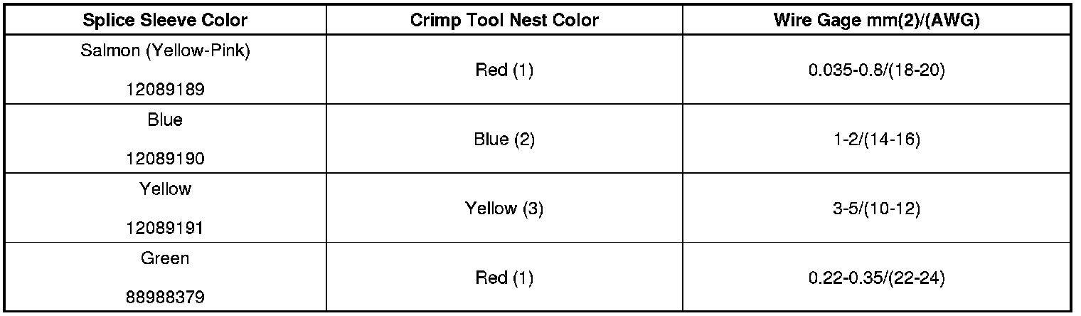 6. Select the proper DuraSeal splice sleeve according to the wire size. Refer to the above table at the beginning of the repair procedure for the color coding of the DuraSeal splice sleeves and the crimp tool nests.