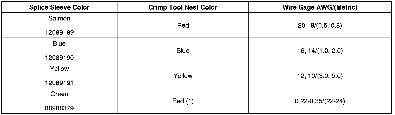 5. Select the proper duraseal splice sleeve (2) and the required crimp nest tool. Refer to the Crimp and Seal Splice Table.