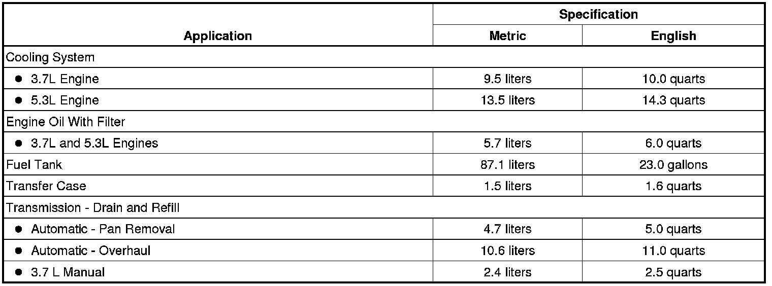 Home >> Hummer >> 2008 >> H3 V8-5.3L >> Repair and Diagnosis >> Specifications >> Capacity Specifications >> Maintenance