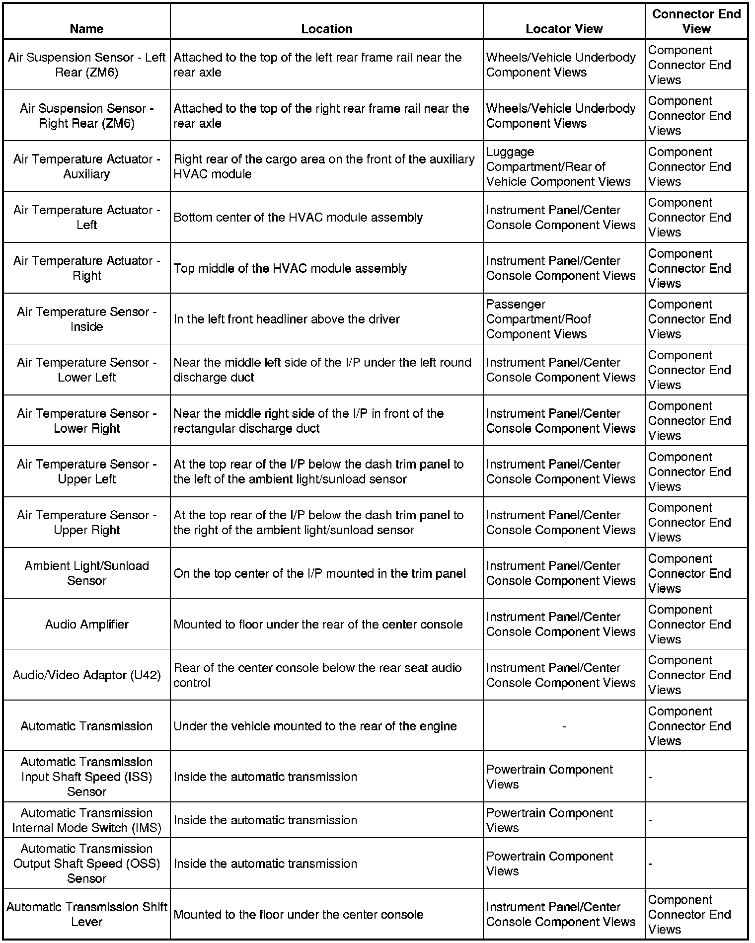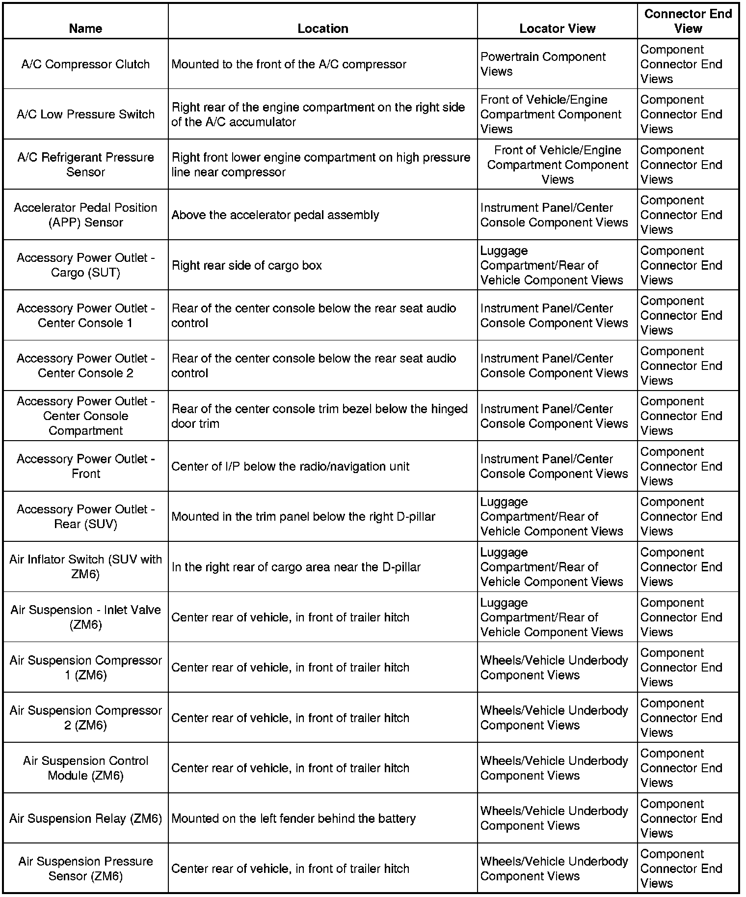 Master Electrical Component ListA/C Compressor Clutch - Air Suspension Pressure Sensor (ZM6):
