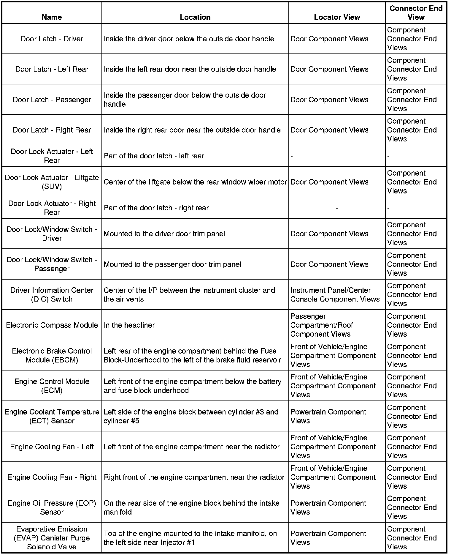 Door Latch - Driver - Evaporative Emission (EVAP) Canister Purge Solenoid Valve: