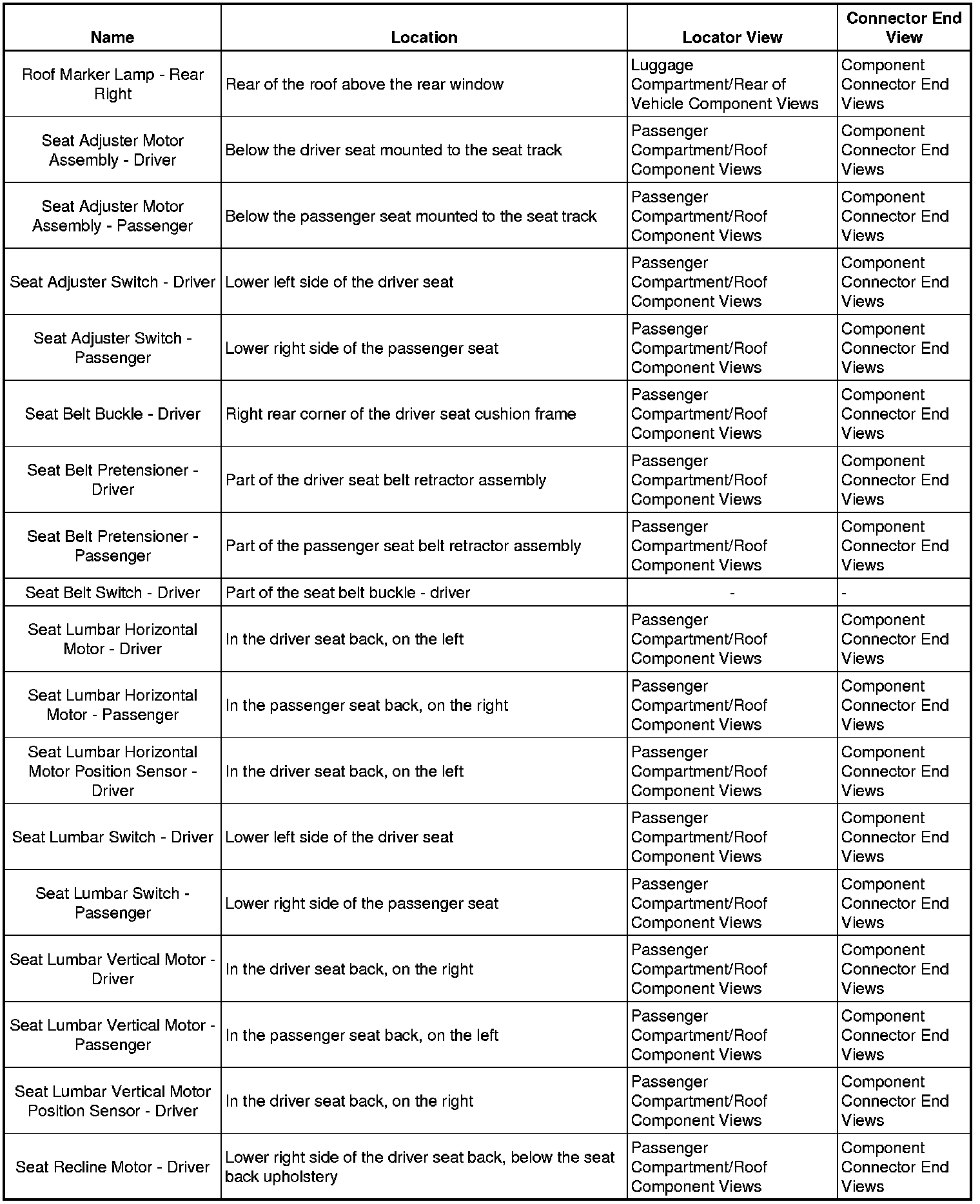 Roof Marker Lamp - Rear Right - Seat Recline Motor - Driver: