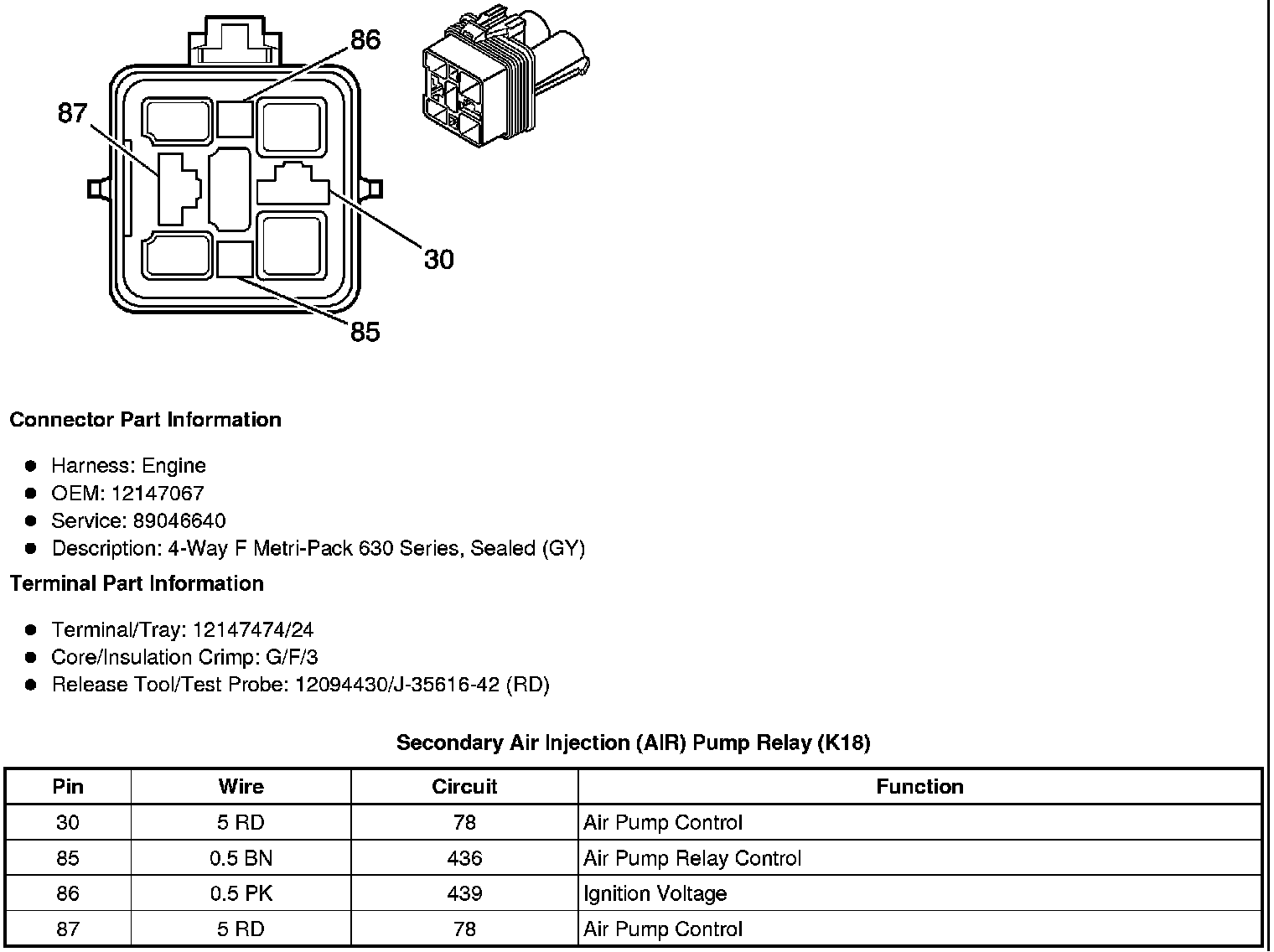Secondary Air Injection (AIR) Pump Relay (K18)