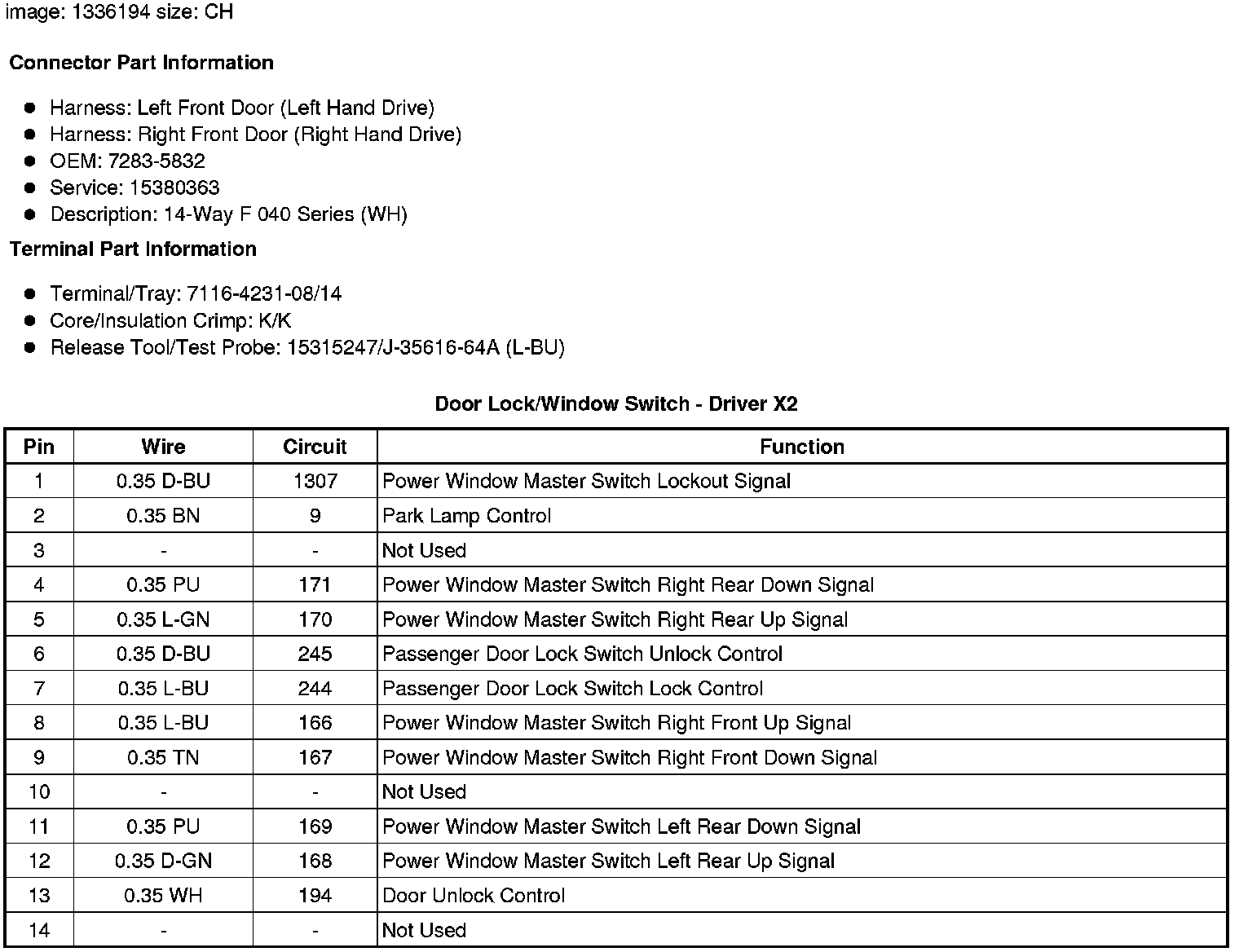 Door Lock/Window Switch - Driver X2