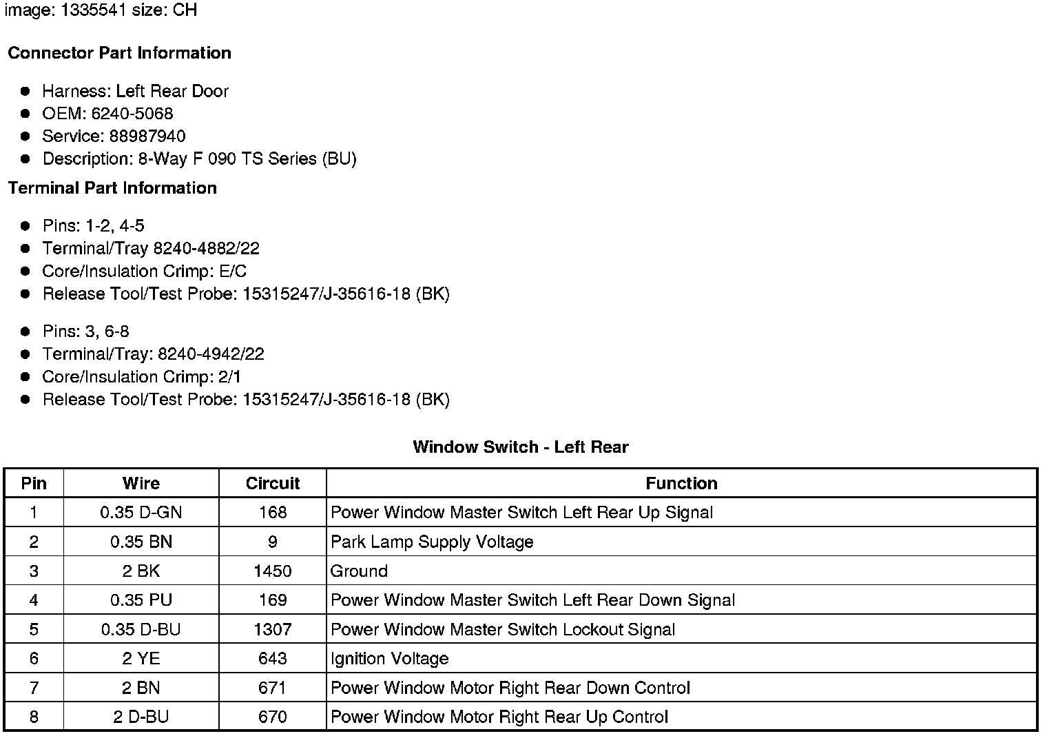 Window Switch - Left Rear