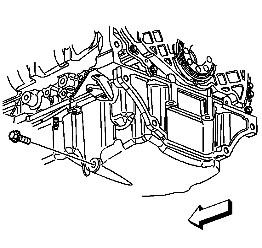 3. Remove the oil pan skid plate. Refer to Oil Pan Skid Plate Replacement (Oil Pan Skid Plate Replacement).