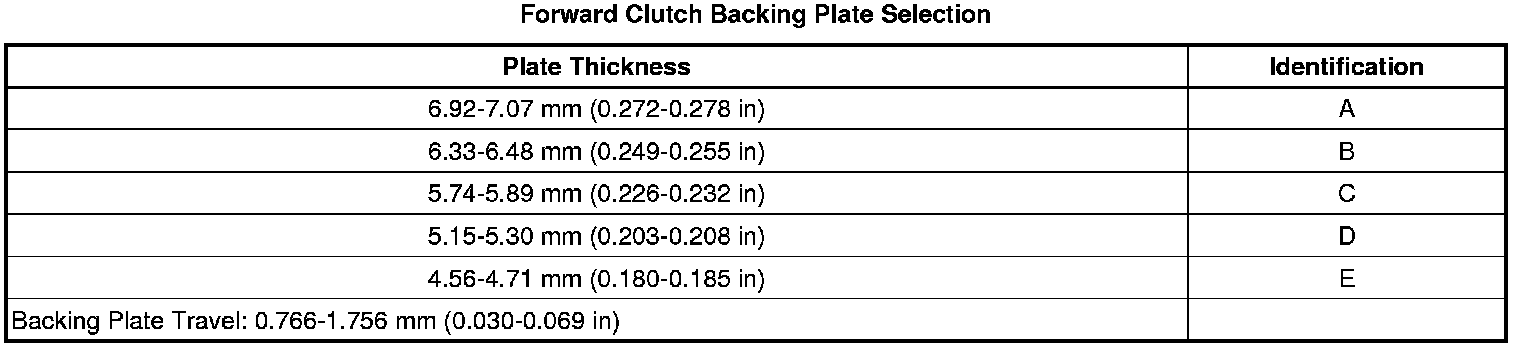 Forward Clutch Backing Plate Selection