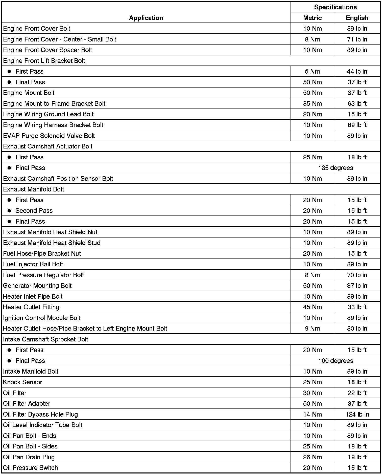 Second Pass 20 Nm (15 lb ft)