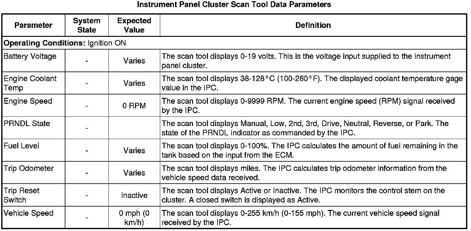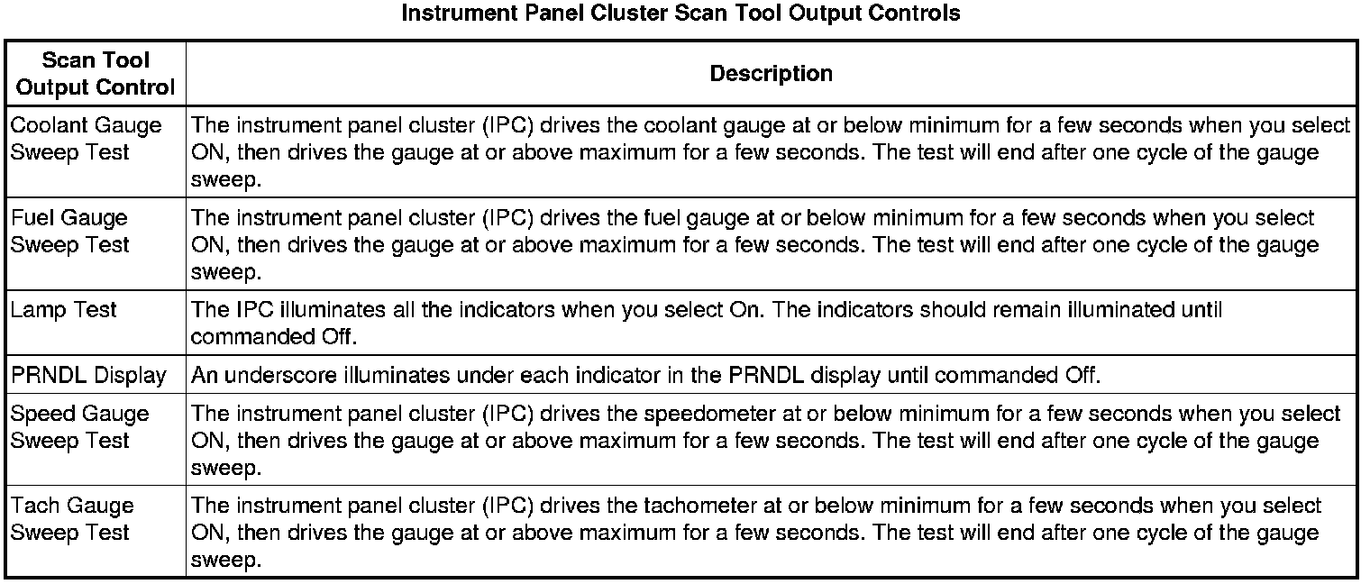 Instrument Cluster Scan Tool Information