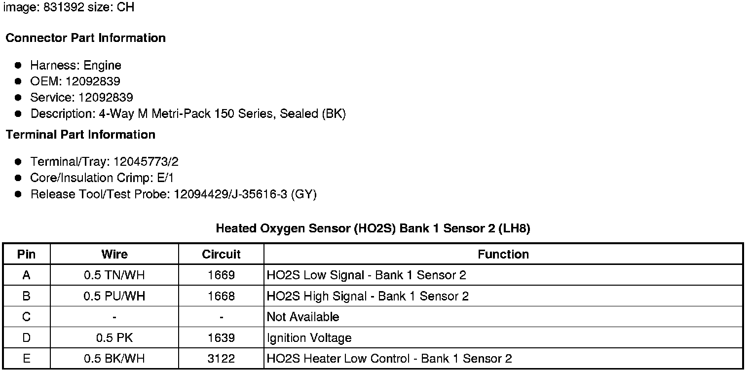 Heated Oxygen Sensor (HO2S) Bank 1 Sensor 2 (LH8)