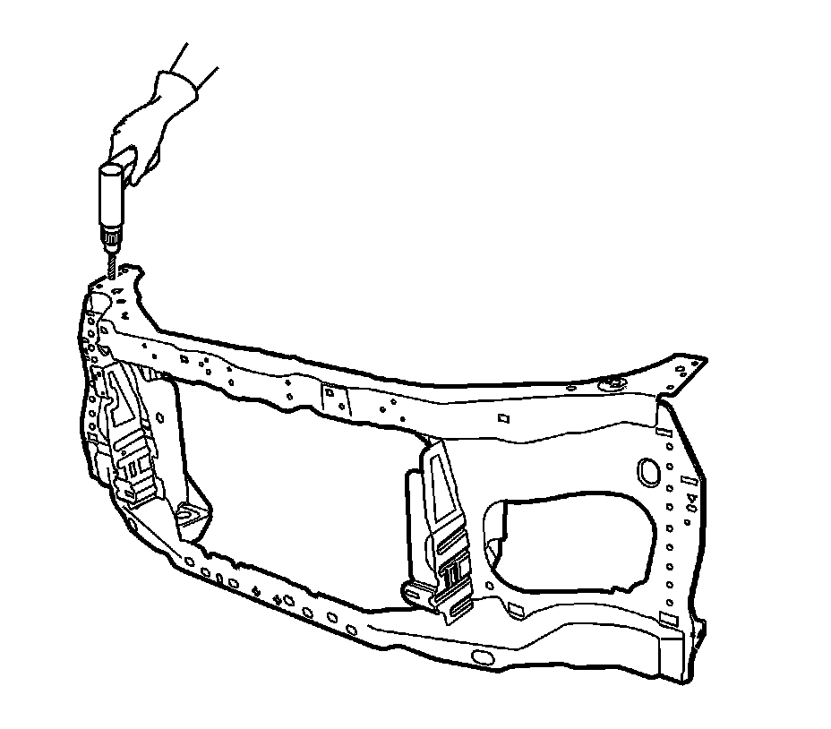 6. Locate and drill out all factory welds. Note the number and location of welds for installation of the radiator support.