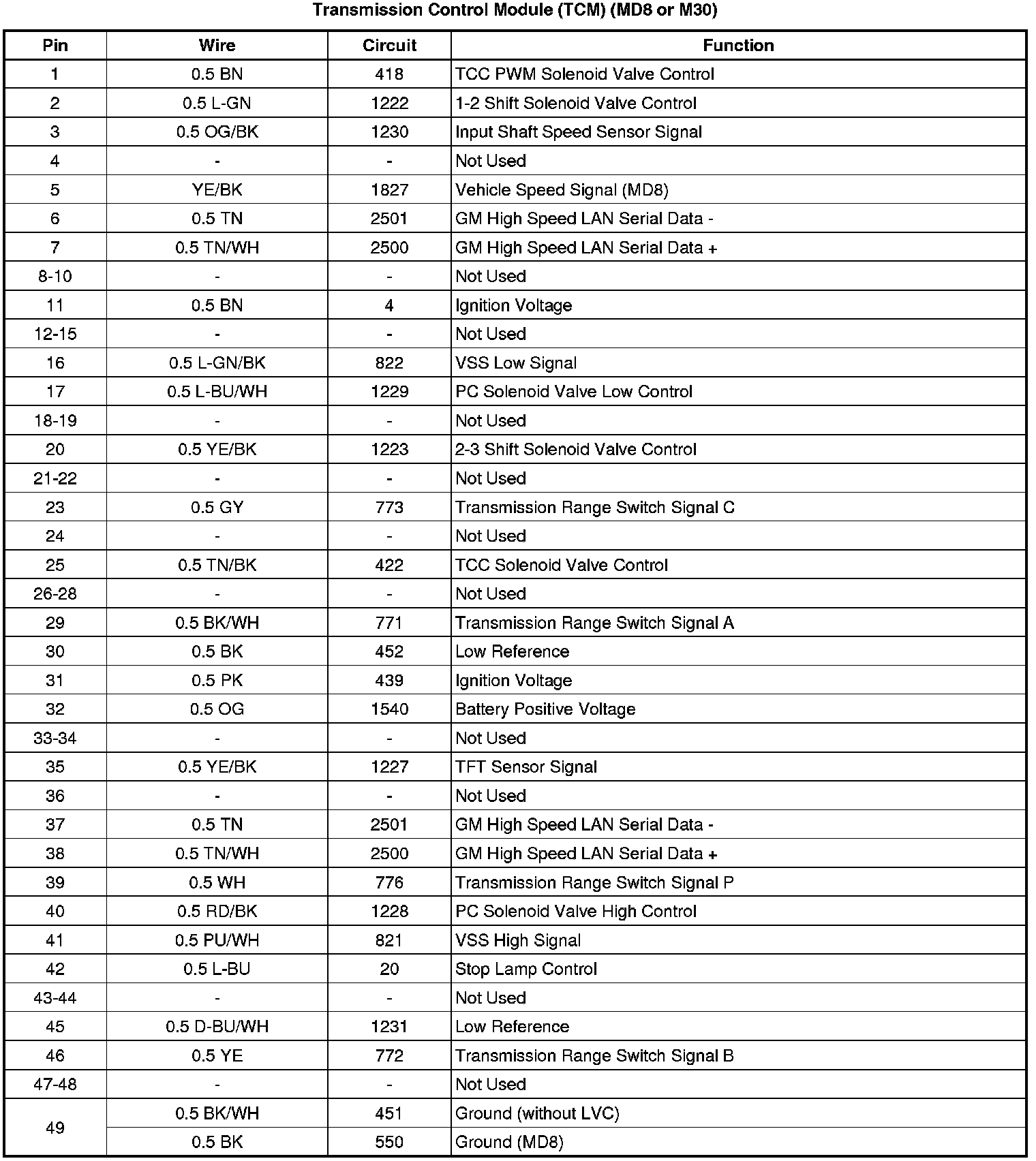 Transmission Control Module (TCM) (MD8 or M30)