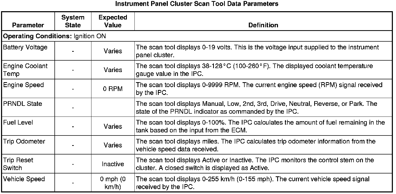 Instrument Cluster Scan Tool Information