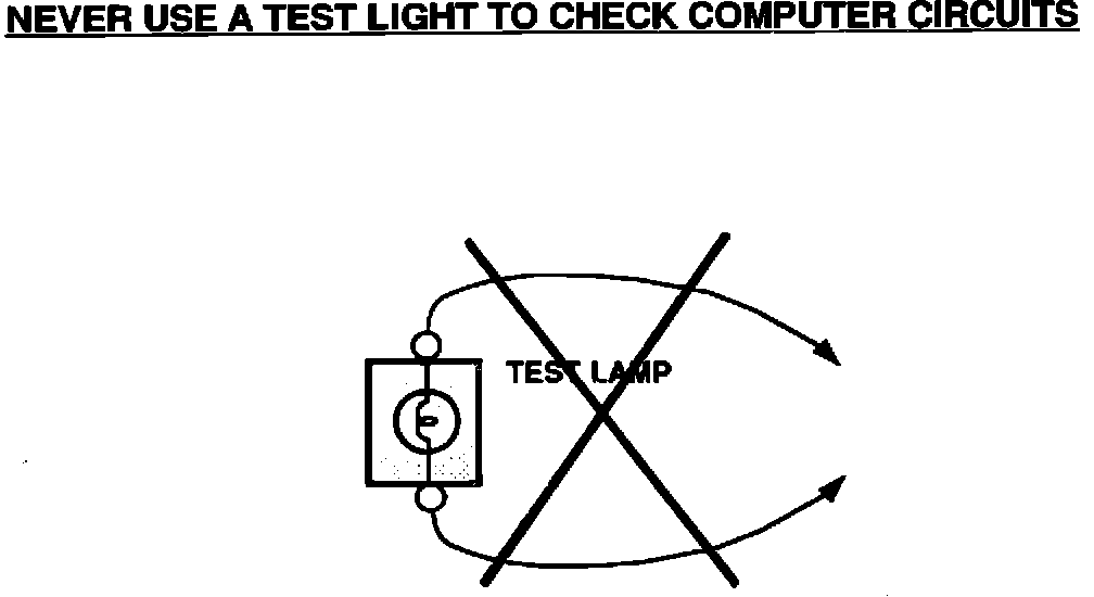 Electronic Control Units that have been replaced under warranty and returned for analysis usually have burnt transistors. Burned transistors are usually caused by high current demands when a test light is utilized to check for voltage in computer circuits. Test light bulbs draw a considerable amount of current in order to light. In most cases, the current demands of a test light will overload the solid-state components (transistors) causing damage.