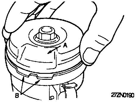 Install the cover so that the cover's indentation "A" is aligned with the housing's notch "B".