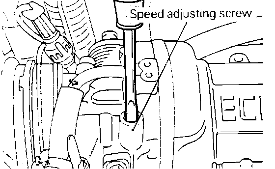 NOTE: If the idle speed is higher than specified, even with the speed adjusting screw fully closed, check whether the idle switch (fixed speed adjusting screw) moving mark exists or not. If it is found that the switch has moved adjust the idle switch to it's proper position.