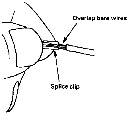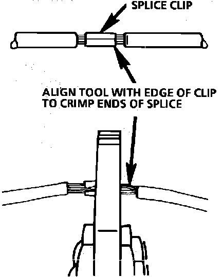 - No insulation is caught under the clip. Crimp the splice again, once on each end. Do not let the crimping tool extend beyond the edge of the clip or you may damage or nick the wires, Fig. 9.