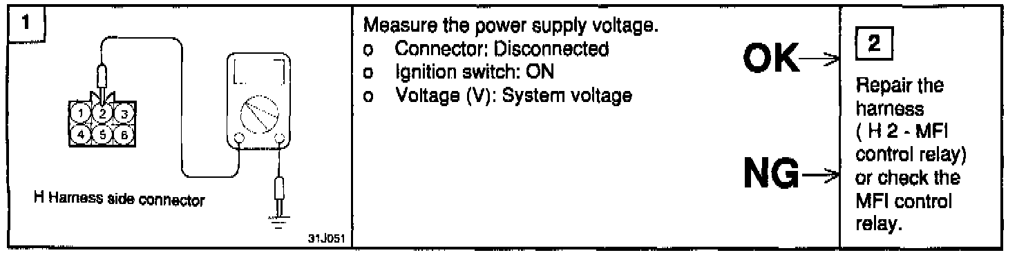 2. If the volume air flow sensor output frequency is other than 0 when the ignition switch is turned on (do not start the engine), Check for the faulty volume air flow sensor or engine control module.