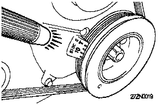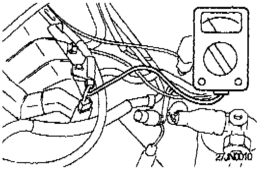 NOTE: Do not use the scan tool. If tested with the scan tool connected to the data link connector, the ignition timing will not be the basic timing, but be ordinary timing. The engine speed indicated is a second of actual speed. In other words, the reading of the tachometer times 2 is actual speed.