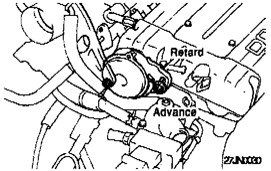 NOTE: The ignition timing will be retarded if the crankshaft/camshaft position sensor is turned to the left and advanced if it is turned to the right
