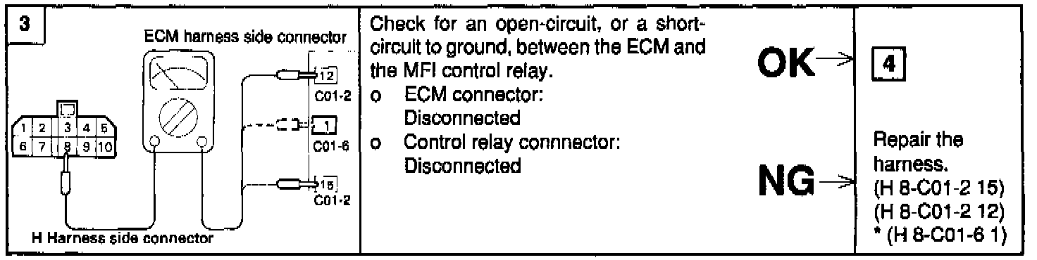 4. If one of the above is improper, replace the MFI control relay.