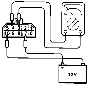 2. Connect a 12V power supply (-) terminal to the terminal 10 of the control relay and check the continuity between terminals 3 and 4 when the (+) terminal is connected to and disconnected from the terminal 7.