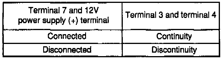 - When applying battery voltage directly, make sure that It Is applied to correct terminal. Otherwise, the relay could be damaged.