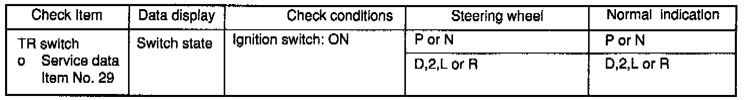 If the TR switch harness check is normal but the TR switch Output is abnormal, check for the control cable adjustment.