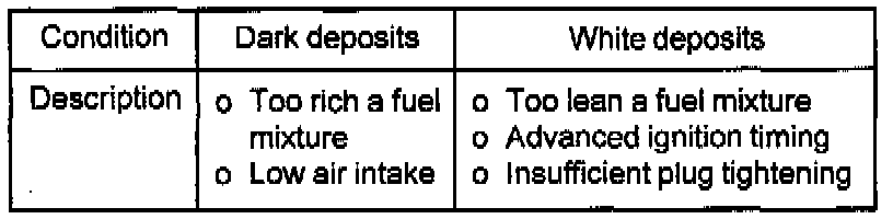 5) Condition of the porcelain insulator at the tip of the spark. plug