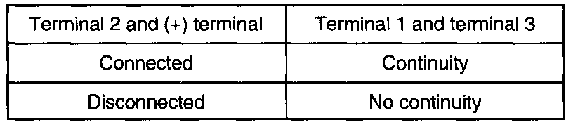 1. Connect the negative (-) terminal of the 1.5 volt power supply to terminal 3 of the power transistor; then check whether there is continuity between terminal #1 and terminal #3 when terminal #2 and the positive (+) terminal of the 1.5 Volt power supply are connected and disconnected.