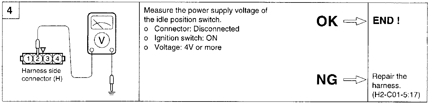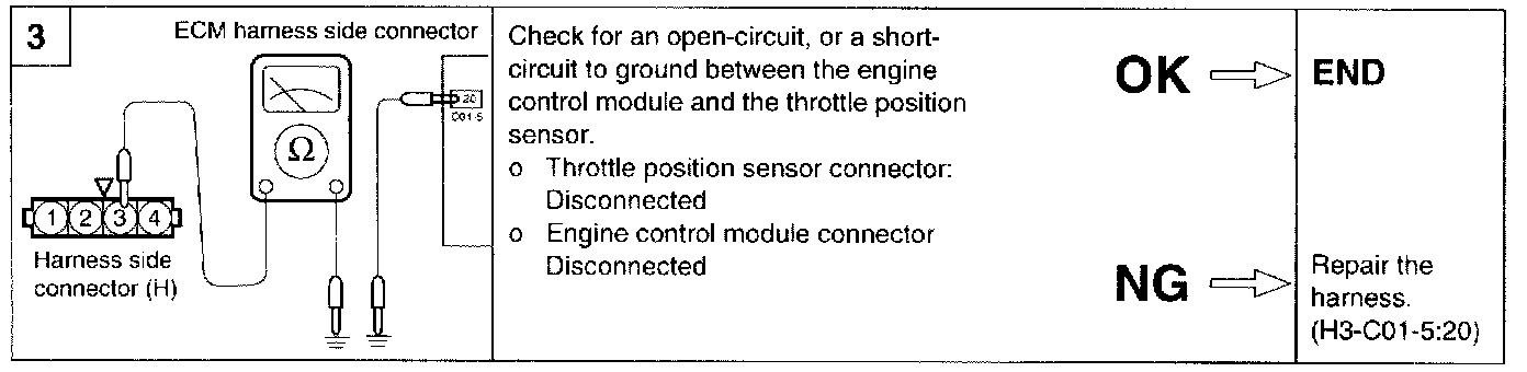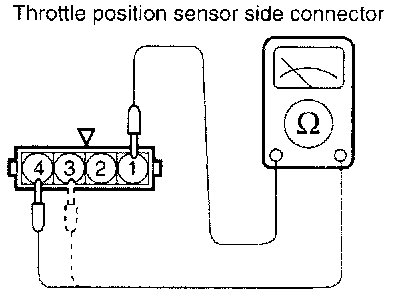 5. If the resistance is out of specification, or fails to change smoothly, replace the throttle position sensor.