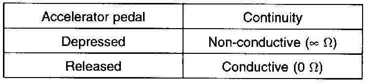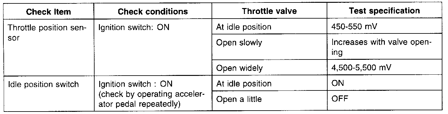 4. Operate the throttle valve slowly from the idle position to the full open position and check that the resistance changes smoothly in proportion to the throttle valve opening angle.