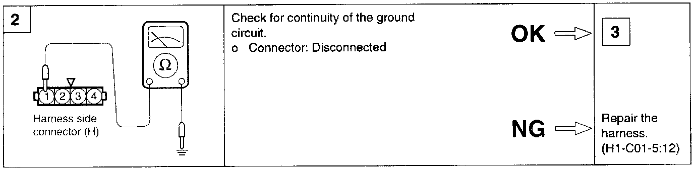 7. Check the continuity between terminal 1 and sensor ground.