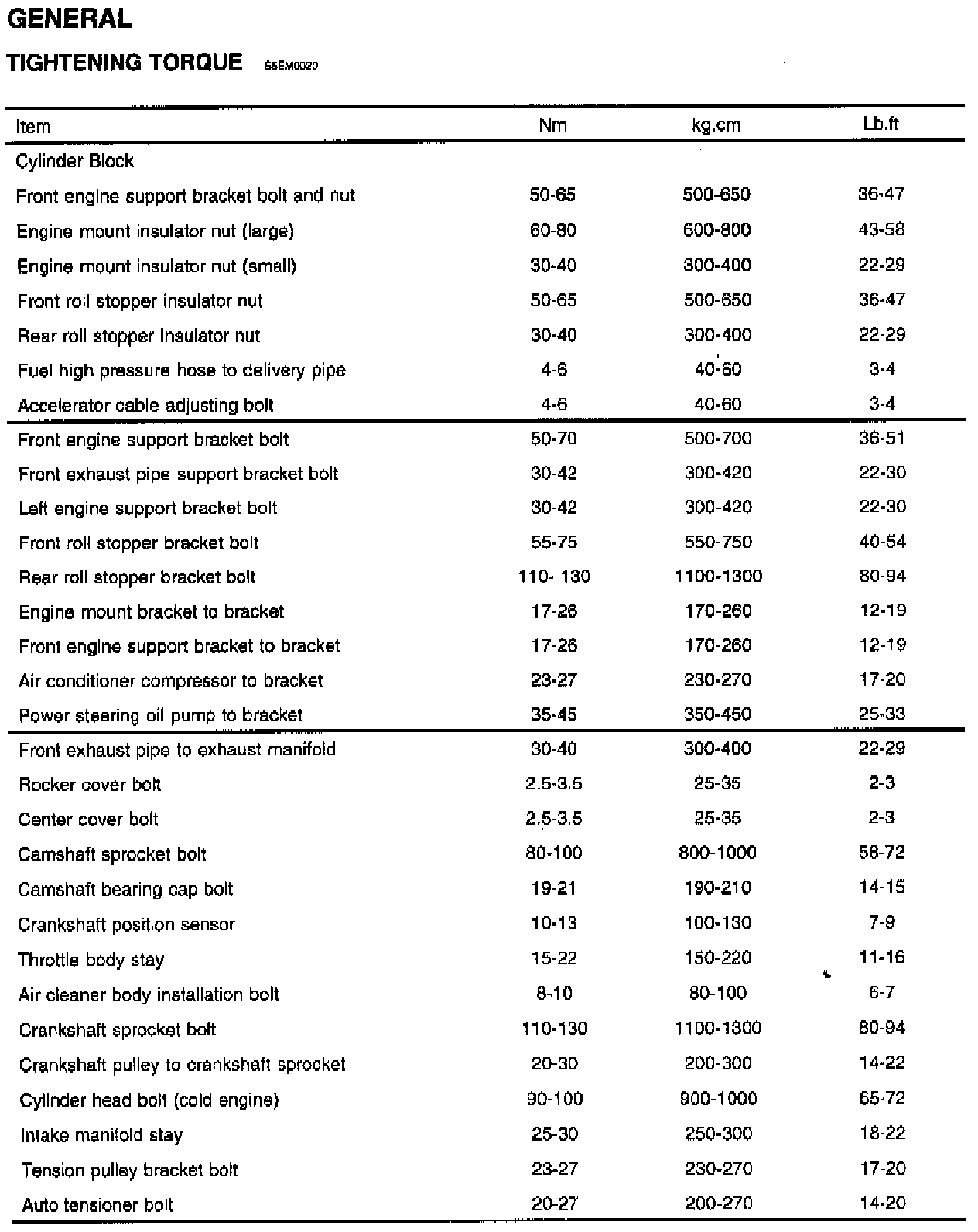 General Torque Specifications