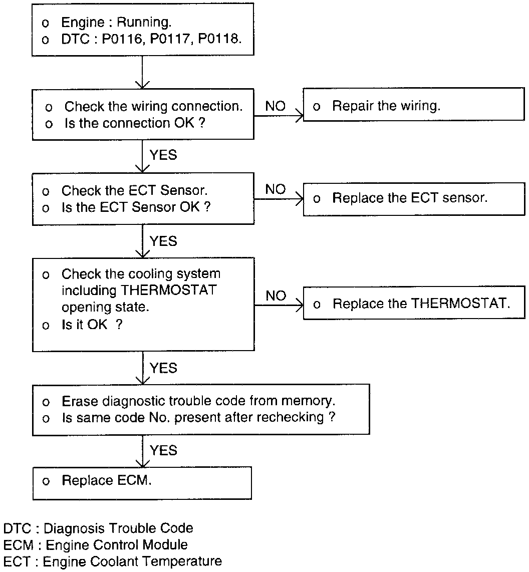 DTC P0116, P0117, P0118 - Coolant Temperature Sensor: