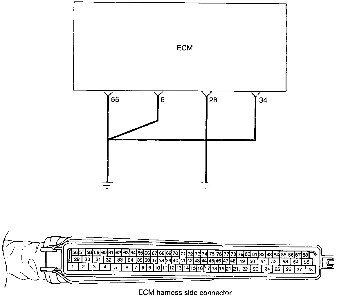 - If the ground wire of the ECM is not connected securely to ground, the ECM will not operate correctly.