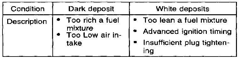 3. Check spark plugs for the following: