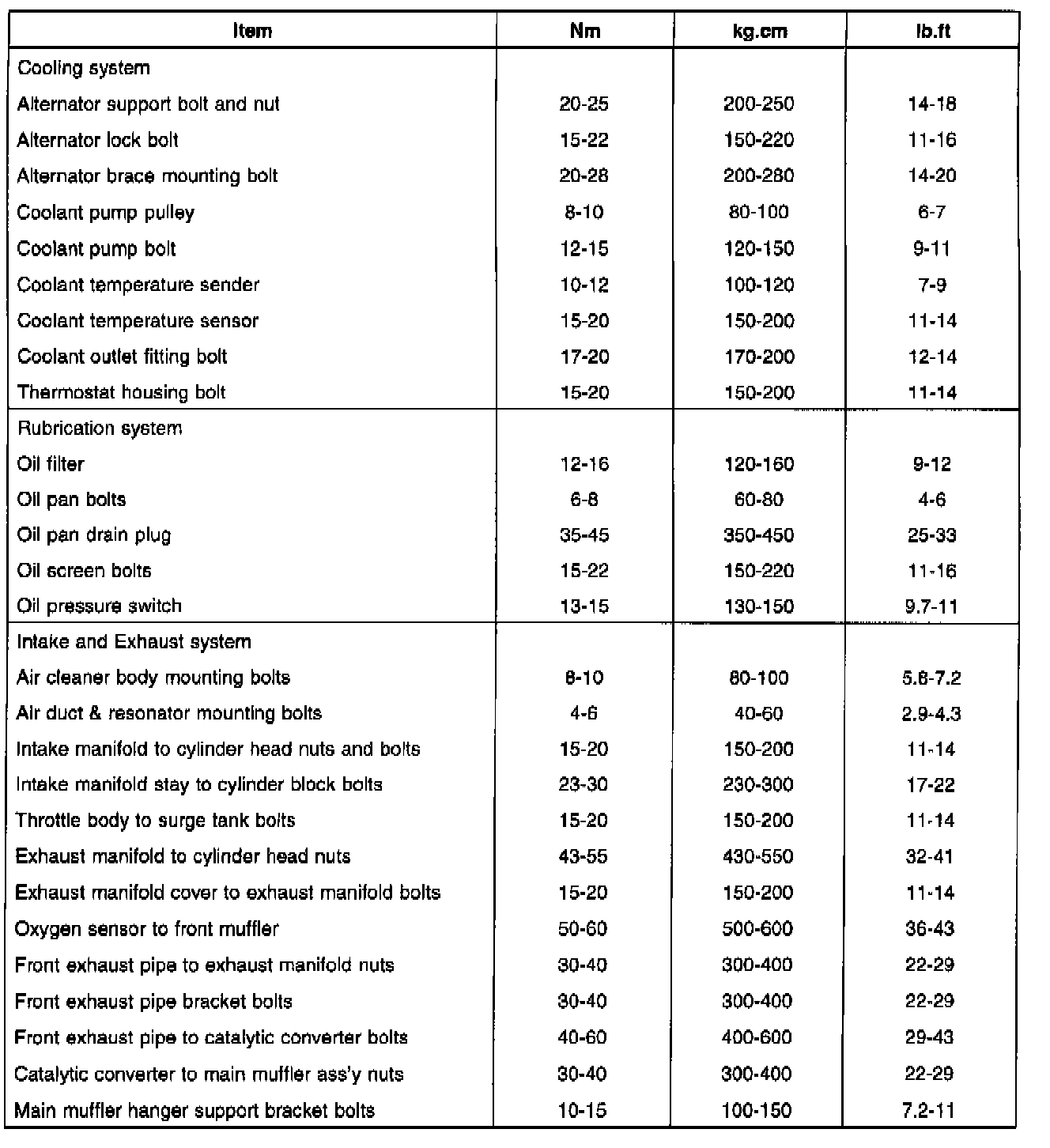 Timing Belt Cover Bolt - 8-10 Nm (80-100 kg. cm, 6-7.4 ft. lbs.)