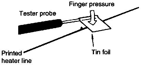 CAUTION: Wrap tin toil around the end of the voltmeter test lead to prevent damaging the heater line. Apply finger pressure on the tin foil, moving the tin foil along the grid line to check for open circuits.