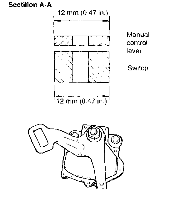 4. Turn the transaxle range switch body until the 12 mm (0.47 inch) wide end of the manual control lever aligns with the switch body flange [12 mm (0.472 inch) wide portion].