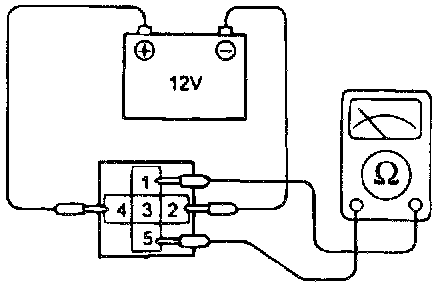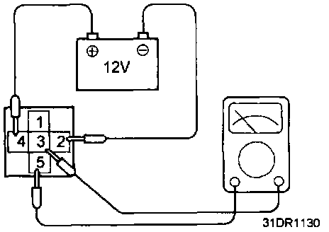 1. Check continuity of relay contacts between terminal 4 (+) and 2 (-).