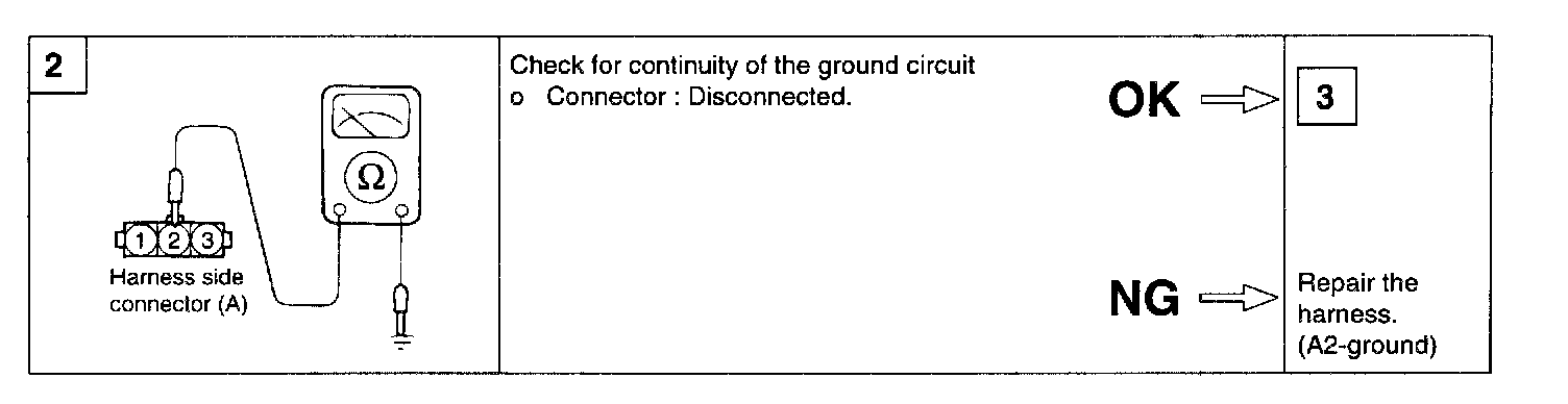 2. Measure resistance between terminal 2 (sensor ground) and terminal 3 (sensor power).