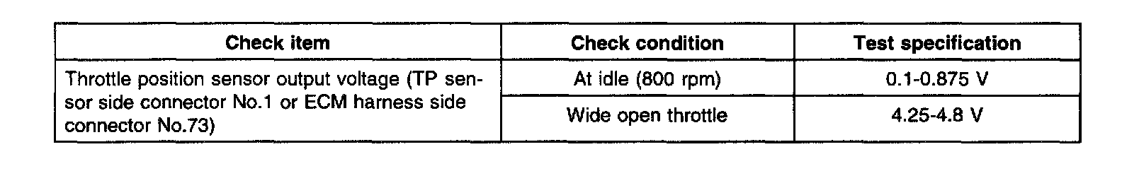 3. Input voltage from throttle position sensor is below 0.1 V or above 4.7 V when ignition switch is turned on.