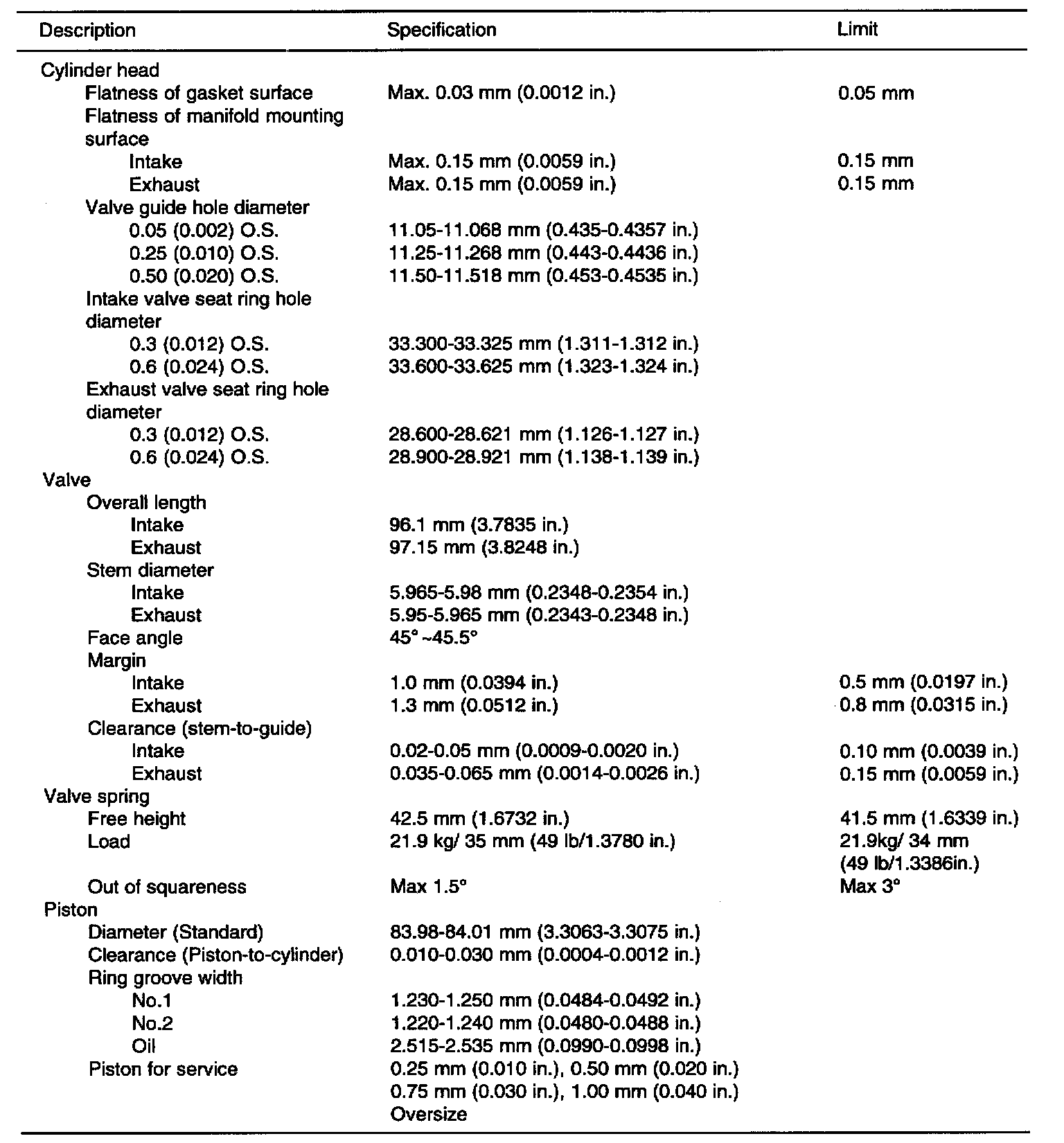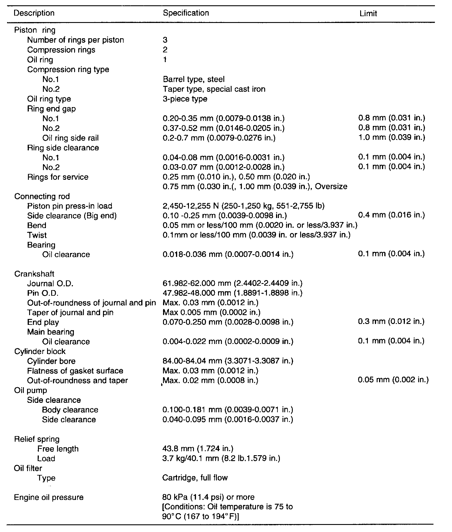 General Engine Specifications