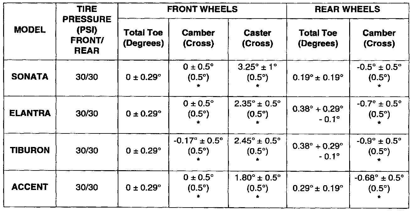 This bulletin is being issued to communicate, in chart form, the final 1999 and the initial 2000 model year vehicle alignment specifications.