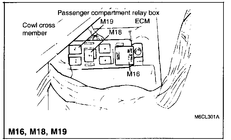 M16 Flasher unit, M18 Fuel pump relay, M19 Power window relay: