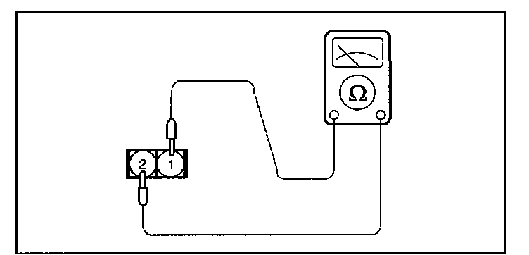 1. Disconnect the knock sensor connector and measure resistance between terminals 1 and 2.